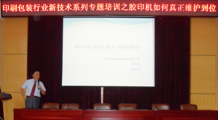 8月11日,我系举办印刷包装行业新技术系列首期专题培训,Packaging Specialty Asia Limited技术总监钟兆魂作“胶印机如何真正维护到位”的辅导报告。系党总支书记左军主持培训活动。